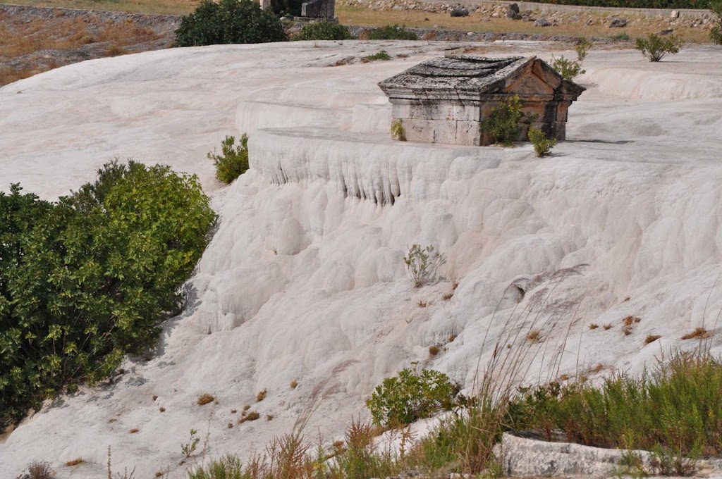 We also visited Pamukkale (Hieropolis) - Pamukkale, Turkey's foremost mineral-bath spa because of its natural beauty: hot calcium-laden waters spring from the earth and cascade over a cliff. As they cool, they form dramatic travertine's of hard, brilliantly white calcium that form pools. The ancient Greco-Roman and Byzantine city of Hierapolis was built on top of the white "castle" which is in total about 2,700 meters (8,860 ft) long, 600 m (1,970 ft) wide and 160 m (525 ft) high. It can be seen from the hills on the opposite side of the valley in the town of Denizli, 20 km away.