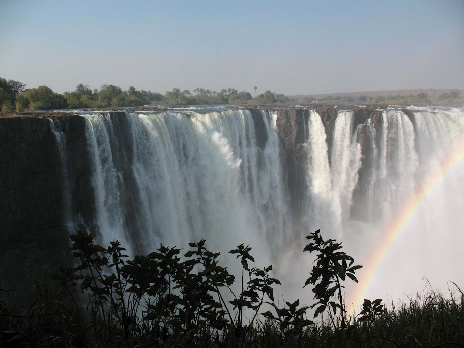 The falls are very long, wide, straight across, at the bottom of the falls the water flows into the narrow river. Being the winter time, and the dry season, the river is low, still the falls are very powerful. The views from the Zimbabwe side are breath taking. We spent an hour walking the falls taking in the views from many different angles.
