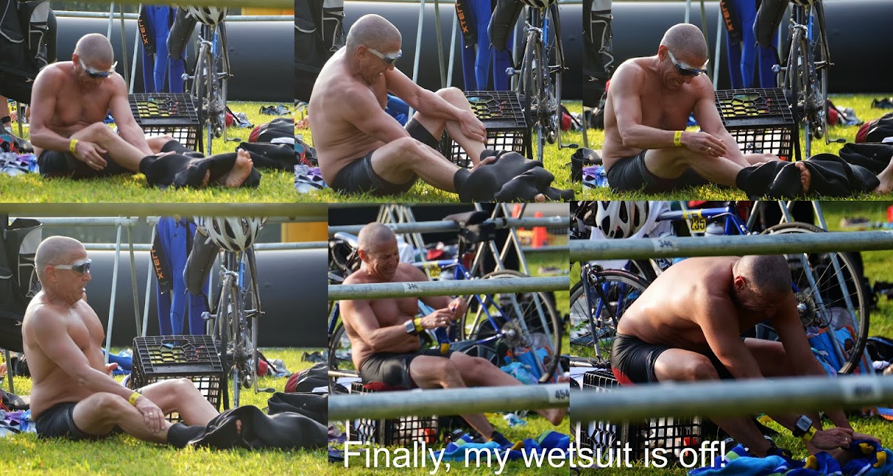 I fell of my stool, and laid on my back, every muscle from my ribs down were cramped/ knotted, I was like an upside down turtle with his legs tied together by a wetsuit. Luckily for me another competitor noticed my predicament and helped by removing my wetsuit.