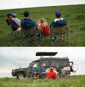 see. They were all eating and slowly walking north on their great migration. At one point we saw two Hyenas following the herd. Kawaga explained this is the calving season, when the wildebeest give birth to their calves. While a full grown wildebeest is to large for a Hyena to kill, a new born is not. The Hyena's will follow the herd hoping for the opportunity to catch an unsuspecting new born.