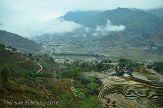terraces and villages, home to different hill tribes such as the Black Hmong and Giay. We stopped and visited with the local villagers. The villages are built into the structures of the terraced rice patties. One interesting observation even though the Black H'mong and the Giay villages are right next to each other it was clear that culturally and economically they are vastly different.
