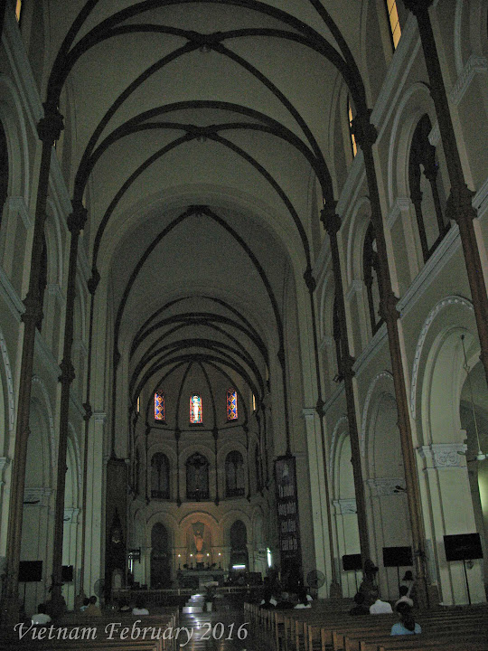 After the palace we visited the War Remnants Museum, this is a museum that holds United States war equipment captured during the Vietnam War, such items as tanks and fighter jets. It was great to read the history from the other sides perspective. After the museum we visited both the Notre Dame Cathedral Basilica of Saigon, and the Old Post Office. The cathedral and post office were both built by the French with materials imported from France. Ho Chi Minh City is significantly more modern than Hanoi and much cleaner. The motor scooters even seem to follow the traffic laws at least better than they do in Hanoi!