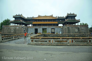 At 12:30 PM we departed for the Citadel, the Citadel is a walled city with a perimeter of about 6 kilometers, currently there are 60,000 people living within the Citadel. The wall and the moat were built to defend the Nguyen emperors, from the Chinese. At one time the Nguyen dynasty ruled Vietnam. Within the Citadel, is the Imperial City, within the Imperial City is the Forbidden Purple City which is where the Emperor and his family lived. Many of the buildings within the Citadel were destroyed in the Vietnam war though some were also destroyed by weather events such as typhoons.