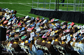 Saturday is graduation day, though Saint Francis is a high school it does have a $37,000,000 endowment. Yes, count the zeros! So the campus is much more like an ivy league university than a high school. The athletic facilities are top notch, including the football stadium which is where the graduation took place. The faculty speakers were some what dry and boring, but the student speakers did a great job of energizing their graduating class. Luckily for us, Double "A" has a last name early in the alphabet, she was called early, so we ducked out after she received her diploma. It was nearing