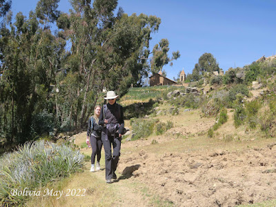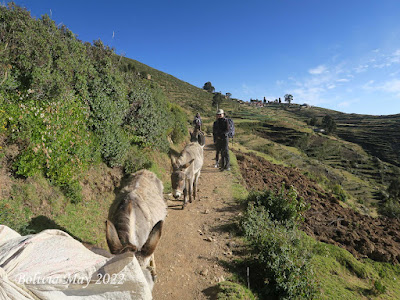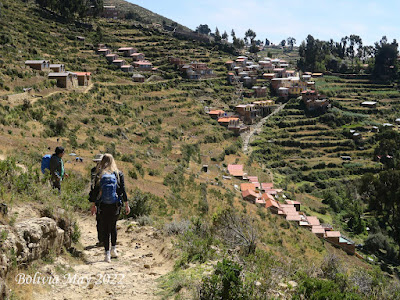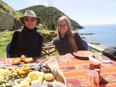 Sun Island is larger than Moon Island, with a many people living on the island. After being dropped off at a landing. It was time to hike to lunch. Wence said our hike would take a hour and a half. Wence failed to mention we would start at 12,000 feet and climb to over 13,000 feet before descending back to 12,000 feet. We were not happy. Though once we arrived at lunch we all agreed the hike was worth it.