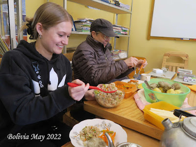 We met Emma at our hotel, she runs the Friends International Bilingual Center. She took us to the center, which is in the town of Alto. Alto means tall in Spanish. Alto is at an even higher elevation than La Paz. We had a fantastic Bolivian lunch with Emma. She told us about the history of the school. She described how they dealt with educating the children during COVID. Bolivia completely shut down during the height of COVID. People were only allowed to leave their homes for a few hours each week. The military patrolled the streets to enforce the rules. This went on for just under a year.