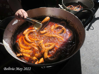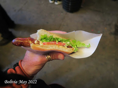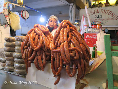 We started our tour with a walk through the Central Market. Sucre is known for its chorizo sausage. Elvis bought us each a chorizo sausage sandwich. This is a specialty in Sucre, and this specific shop is packed each morning. When the president is in town, he comes here for a sandwich.