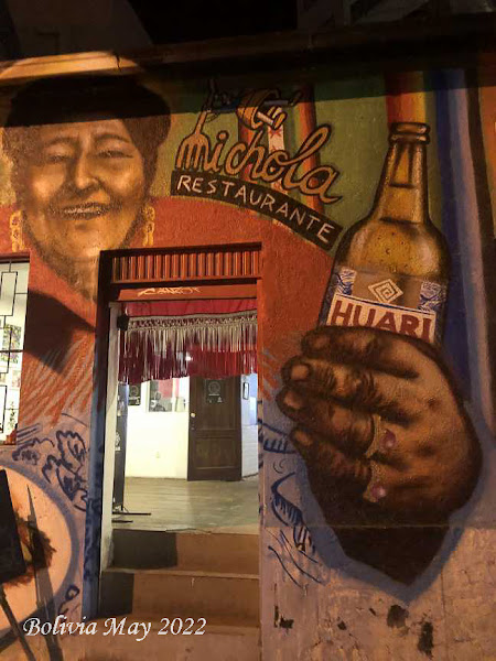 Last night, after packing for the next day’s travel, we had dinner at Mi Chola. Mi Chola is a restaurant and art museum. While we enjoyed a 7-course meal, we also enjoyed viewing beautiful artwork. The service was perfect the food was delicious. Mi Chola is a must-try while in La Paz.