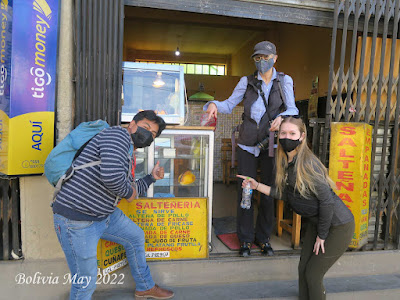 We stopped to get some salteñas at a local Salteñeria. Salteñas are similar to empanadas but a bit sweeter and juicer.