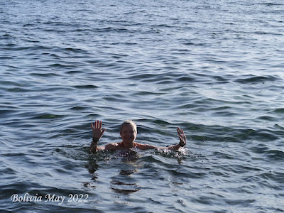 After checking into our hotel, Margarite could not resist the 50-degree water temperature and took a swim in Lake Titicaca. After the swim, we had cocktails at a waterfront bar and watched the beautiful sunset.