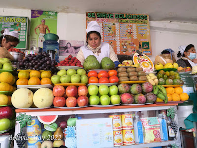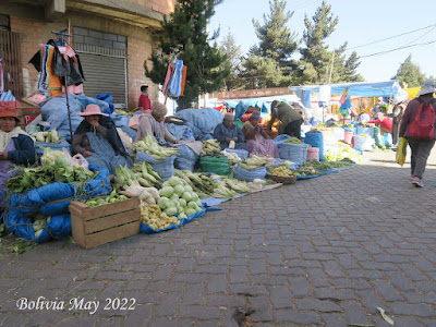 Once in El Alto, we walked the open market where there were many fruits and vegetables for sale. This is the regular market and is open every day.