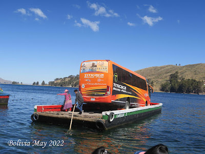 To get to our final destination, Copacabana, we had to cross Lake Titicaca via a very modern ferry. They would load giant tour buses on these ferries. While the ferries have small outboard motors, it seems they are mostly controlled by the captain and crew using long poles.