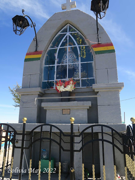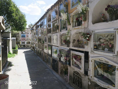 It was back on the blue line toward La Paz. We stopped and walked through the cemetery. When someone dies, their body is placed in a mausoleum for one year. After the year the body is cremated. Family and friends during that first-year visit and bring tokens of their love. Some items are as simple as flowers others are elaborate offerings.
