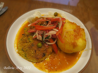 We had lunch at a vegetarian restaurant. We enjoyed a traditional Bolivian dish.