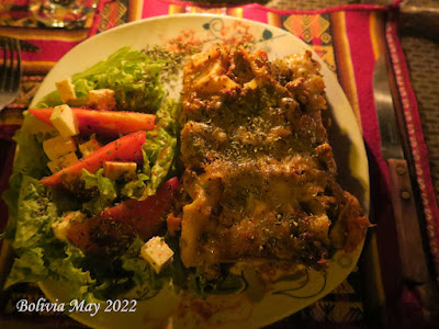 As we searched for dinner, we learned that Sucre is the Capital but not the Capital of restaurants in Bolivia. Every place we looked served mostly Bar/Pub food. I recommend visiting Sucre, but don’t come for the food, except if you do the cooking class.