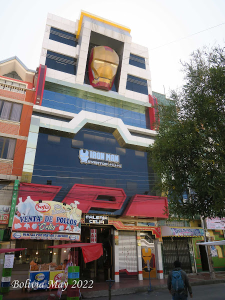 We hopped back on the blue line and continued deeper into El Alto. Wence wanted to show us these large homes that people built. The lower levels are for parties, the upper levels are where the owners live. Each had a different theme. We toured one that had an Iron Man movie theme.