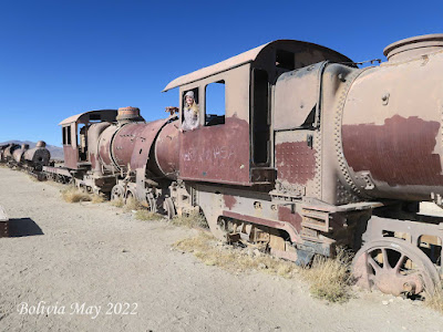 From Uyuni, we headed to the old Silver Mine. The name Pulacayo, Wence explained the name came from a donkey falling down the hill, but we could not make the connection. The mine is more like a small town. There is a church, a school, housing, etc.. The mine is an hour from Uyuni. When the mine was operating it was easier to house the workers, and their families near the mine, than have them commute. A hundred years ago getting around was not that easy.