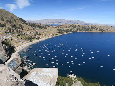 We would stop periodically to take pictures of the beautiful views, finally seeing Copacabana in the distance. Most people think the 1978 Barry Manilow hit Copacabana was about a singer at a nightclub in Rio. The song is actually about the town of Copacabana in Bolivia.