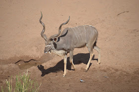 For the day we saw elephant, giraffe, warthog, impala, eland and a lot of lion, and hyena tracks, as well as the one lion that got a piece of me.