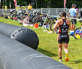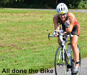 If I could only walk! I hobbled to the transition area about 200 meters from the lake. Klark Kent was just finishing up his transition, he beat me out of the water by just under a minute, with a time of 47:22. Here are the Swim stats. Laine - 33:09 first women out of the water. Crazy Christine 38:32 first time she ever did an open water swim, like I said "CRAZY". Lorenzo 42:21 he just did an Ironman a few weeks before.