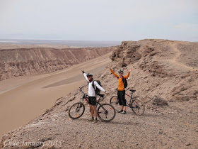 is difficult. Depart from the hotel heading northeast then head north towards the Salt Mountain range enjoying marvelous views of the Andes and volcanoes. Continue along the cornices viewing the formations of Death Valley from above, before descending via the old trails into the valley itself. Once at the bottom, continue on to Death Valley and cycle through the amazing scenery before returning to the hotel. The uphill and downhill parts are steep in places and this excursion gives a great workout!