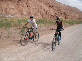 Devils Canyon / Catarpe - This is billed as a medium ride. Joining us is a couple from Brazil, Pedro and Medellin. We departed the hotel on bikes heading north towards the Salt Mountain Range, and beautiful Devil's Canyon. The ride takes place at an average elevation of 2,400m/8,000ft. After crossing the San Pedro River we arrive at the Canyon, which is flanked by clay cliffs and has a sandy bottom in places. The ride is a constant gentle climb until we come out of the labyrinth on to the Catarpe plateau. The return journey follows the natural course of the San Pedro River until we reached the village and hotel.