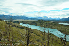 We will be staying at Explora Patagonia for the next 4 days. We arrived at 1:00 PM met with our guides and picked what they termed a demanding hike that would start at 3:00 PM. The hike was called, Cornisas this is a half day hike under the heading of advanced, 6 kilometers in distance and one thousand feet of elevation gain, things to see, cliffs, Lake Pehoe, as well as many panoramic views. We were instructed to get settled in our room, lunch would be at 2:00 PM with the hike at 3:00 PM. The hotel is simply magnificent, built into the hill side on the lake with unbelievable views. We had lunch at 2:00 PM joined by Nick and Linda a couple originally from the UK, that now reside in Houston, TX. At 2:55 PM we had not received our lunch yet, so I alerted the guide. The response I got was unexpected, "I guess you need to decided, do you want to have lunch or go on a hike, you can not do both!" All of sudden I realized at Explora Patagonia, the customer was never right. I simply said, we are adults have our own brains, a map, so we can do both.