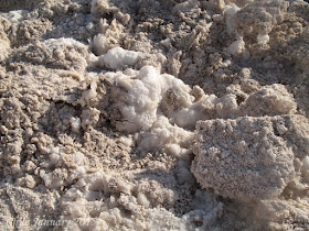 below when the water table raises. The water then evaporates leaving the salt and minerals as a lumpy deposit.