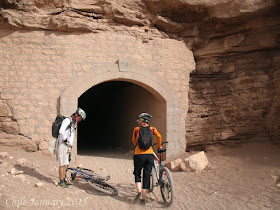 15% grade of lose gravel and sand. Almost immediately our lungs were on fire, we quickly geared down and found a rhythm. After what seemed like hours but was only 20 minutes, we reached the old tunnel. This was the original route between Calama and San Pedro. We went through the tunnel made a quick right and continued our climb, in many spots it was to steep to ride, so we carried our bikes. We had gone from 8,000 feet to over 12,000 in a fairly short period of time. Our guide was impressed!