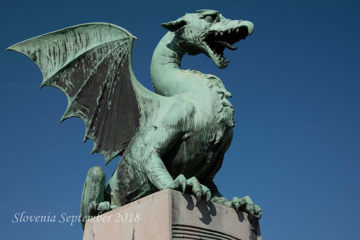 on the banks through winter. So they built a village right in the middle of the Dragon’s hunting ground. This is how Ljubljana became known as the Dragon town, the Dragon Bridge is a great illustration of how this myth was carried over into the architecture the bridge has 20 dragon sculptures on it.