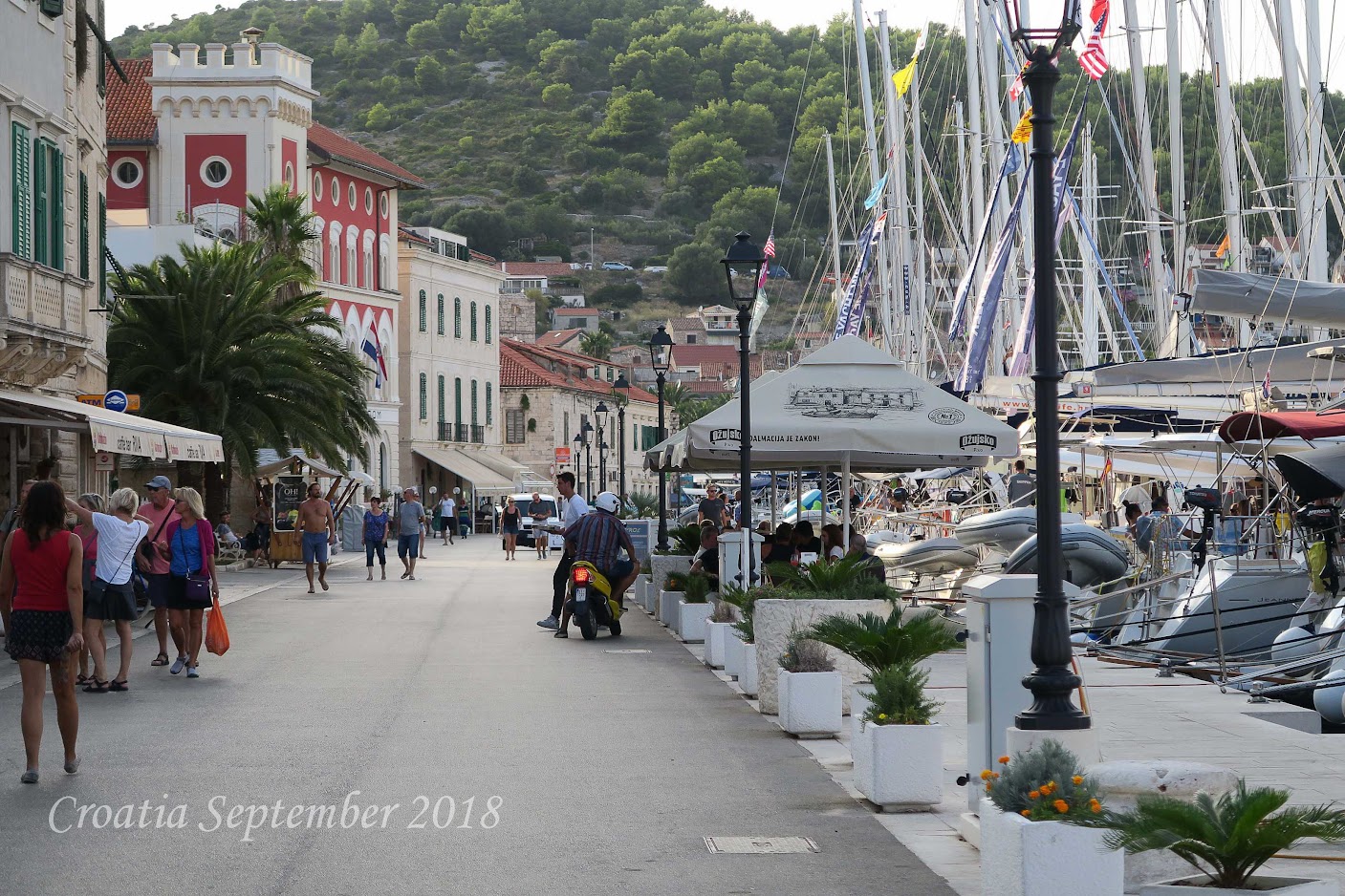 When we woke and continued to enjoy the secluded cove swimming and paddle boarding. I even got a very hilly 4-mile run in. I think I saw the entire island, yes this is a small island. Our plan for the morning was to sail to the south side of Hvar and visit a local winery. Unfortunately, the winds were too strong and we could not dock, not even with Luka’s skill set. We continued to a cove on the Island of Sveti Klement. This was the first Anchorage we have visited this week that was crowded. Once we got a buoy and the boat was secure, Luka dropped us off at the dock using the dingy. We walked across the island from the south side to the north side. Once we reached the north side we took a speedboat over to the island of Hvar to the village of Hvar. The village of Hvar is known as the Monte Carlo of Croatia. What a beautiful village. The largest village we have visited since we got the sailboat. Very clean lots of open-air cafes and restaurants. We walked up the hill to the Spanjola Fortress. From the fortress, we could see all of Hvar. On the walk down to the main square, we stopped at many of the local shops doing a little provisioning for our last two days on the boat. Once back at the Hvar dock we caught a speedboat back to the Island of Sveti Klement.