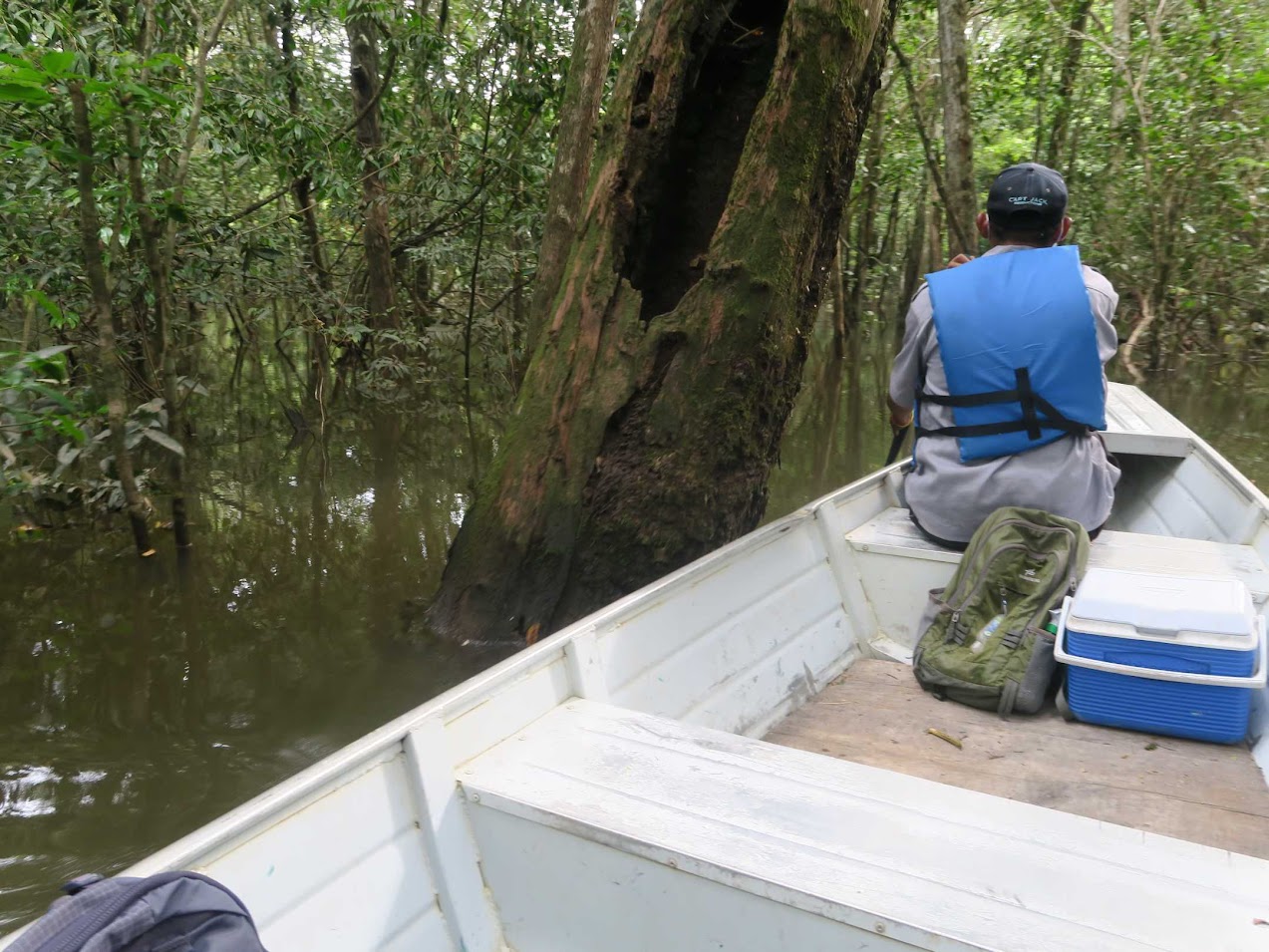 Devon dropped us at the boat landing, or should I say the edge of the flooded river. The river is a full mile wider than normal because of the extended rainy season.
