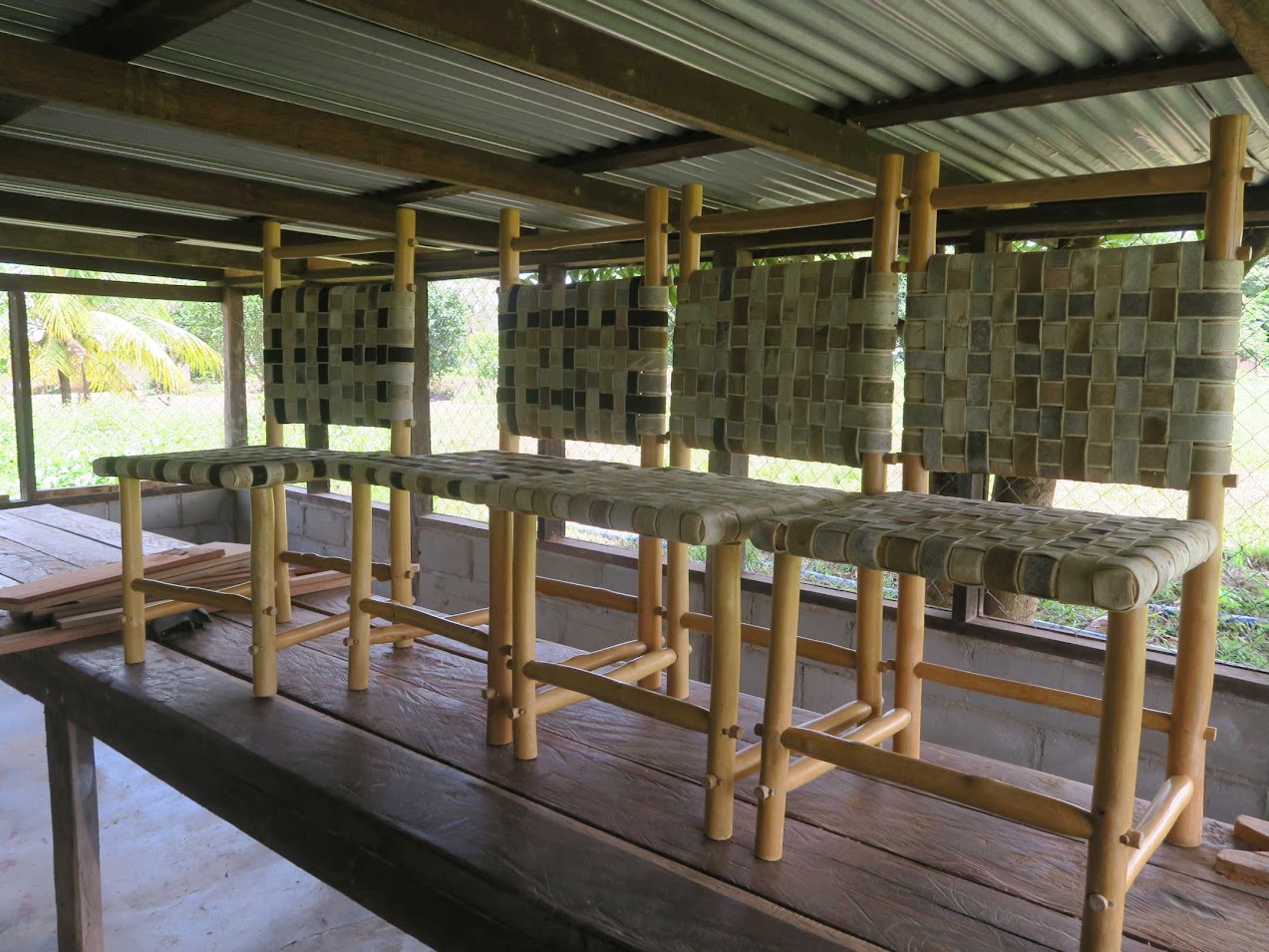 After learning about the crafts, Howard took us to the woodshop. This is an area Howard runs. He trains the woodworkers and designs the projects they make. The shop does have power tools, such as a table saw, planer, and lathe. Recently, the shop got a contract to build desks and chairs for a school.