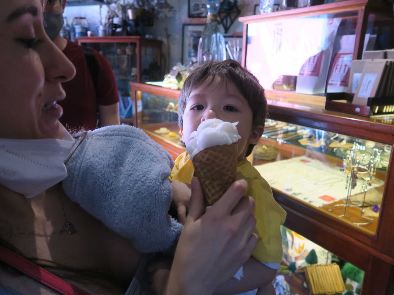 After we had breakfast, we walked around town eating ice cream. Are you starting to see a commonality with our friends? Even Nico an ice cream eater in training, got in on the action.