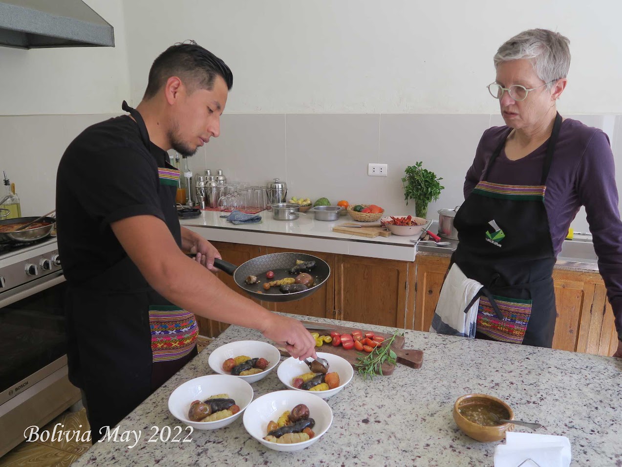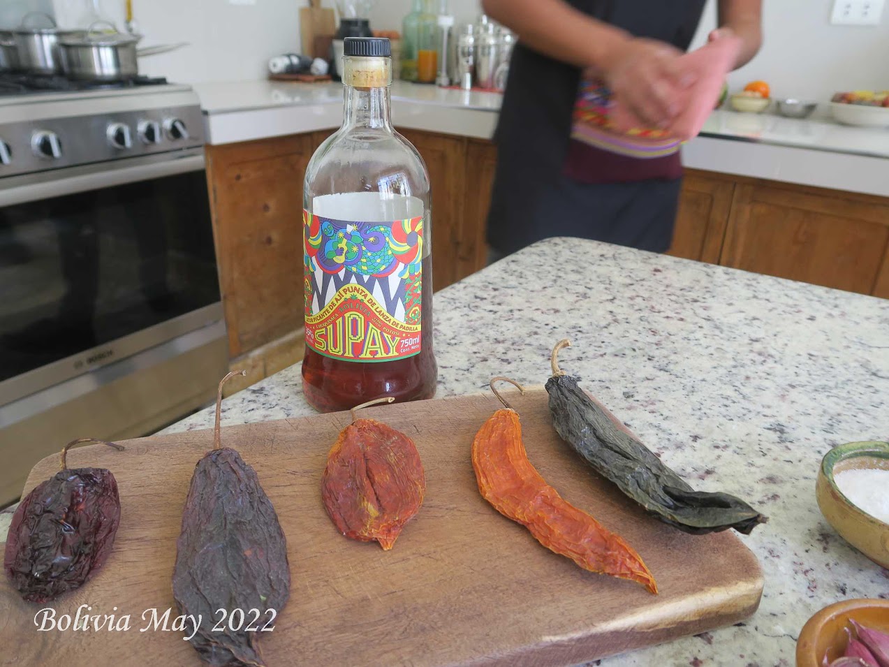 We arrived at Boca del Sopo right at 11:00 AM. Moises, the owner, chef, and instructor introduced himself. He immediately offered us a shot of Supay. He called it an “Ice Breaker”. I think a better name might be “Ice Melter”. After our shot, Moises explained all the ingredients we would be using and how they related to the Bolivian history/culture.
