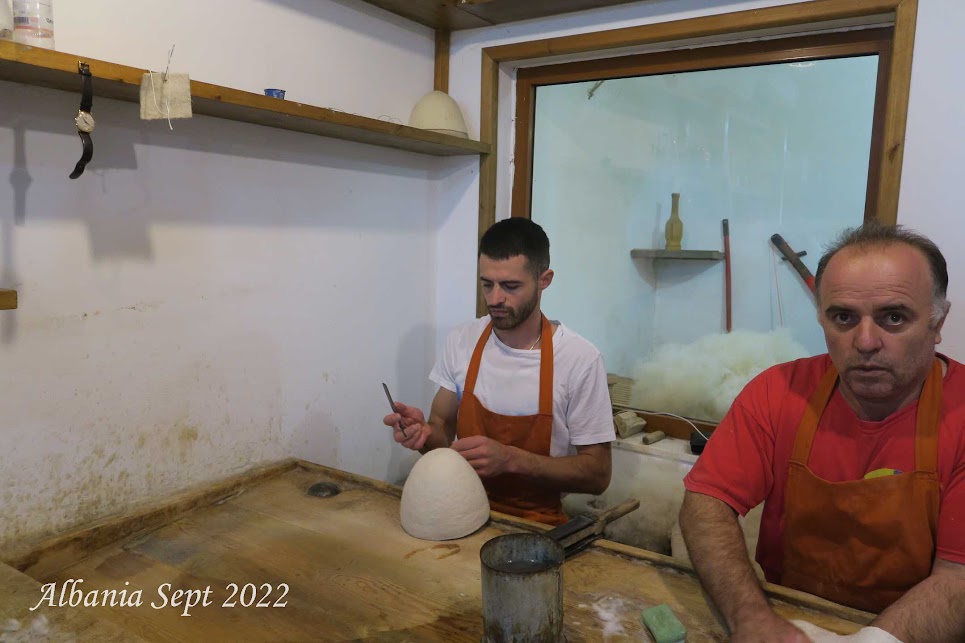 As you may have noticed, Ben wears a traditional hat of the Albanian Highlanders (the mountain people). We stopped by the only shop in all of Albania where a father and son still make the hats using the traditional method. It takes over an hour to make one hat.