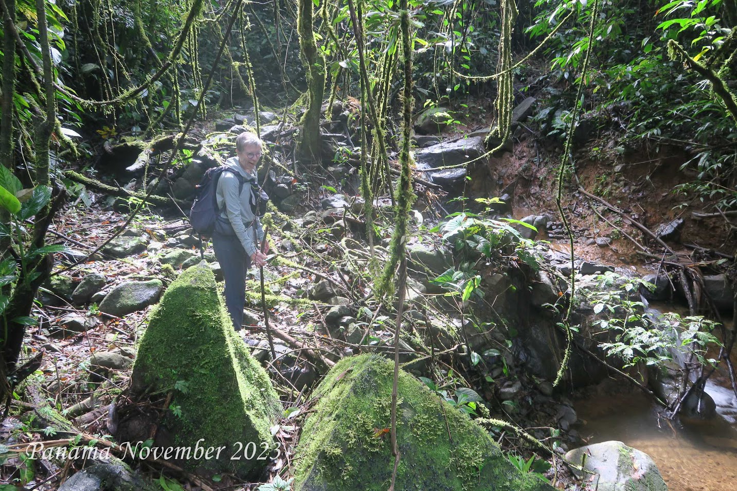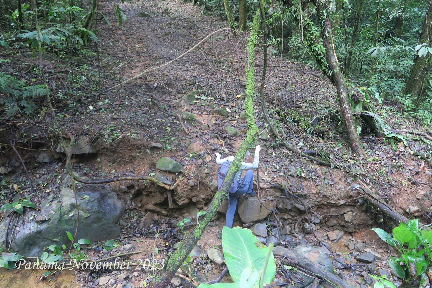 Today, after breakfast, we set out from the lodge for a two-mile hike to Hacia Rio. The adventure kicked off with a steep downhill, progressively getting steeper. The ground, still slick from yesterday's rain, turned the hike into an unintentional dance routine.