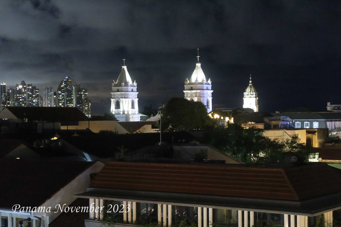 Easy trip back to Panama City: Peter met us at the airport, and we're staying at the Central Hotel Panama Casco Viejo for the third time. The drive from the city airport to the hotel was longer due to new protests, but Peter navigated it well.