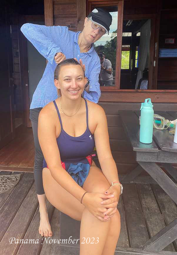 Before the food arrived, the ladies took a dip in the ocean to cool off – just another hot, humid day in Panama.